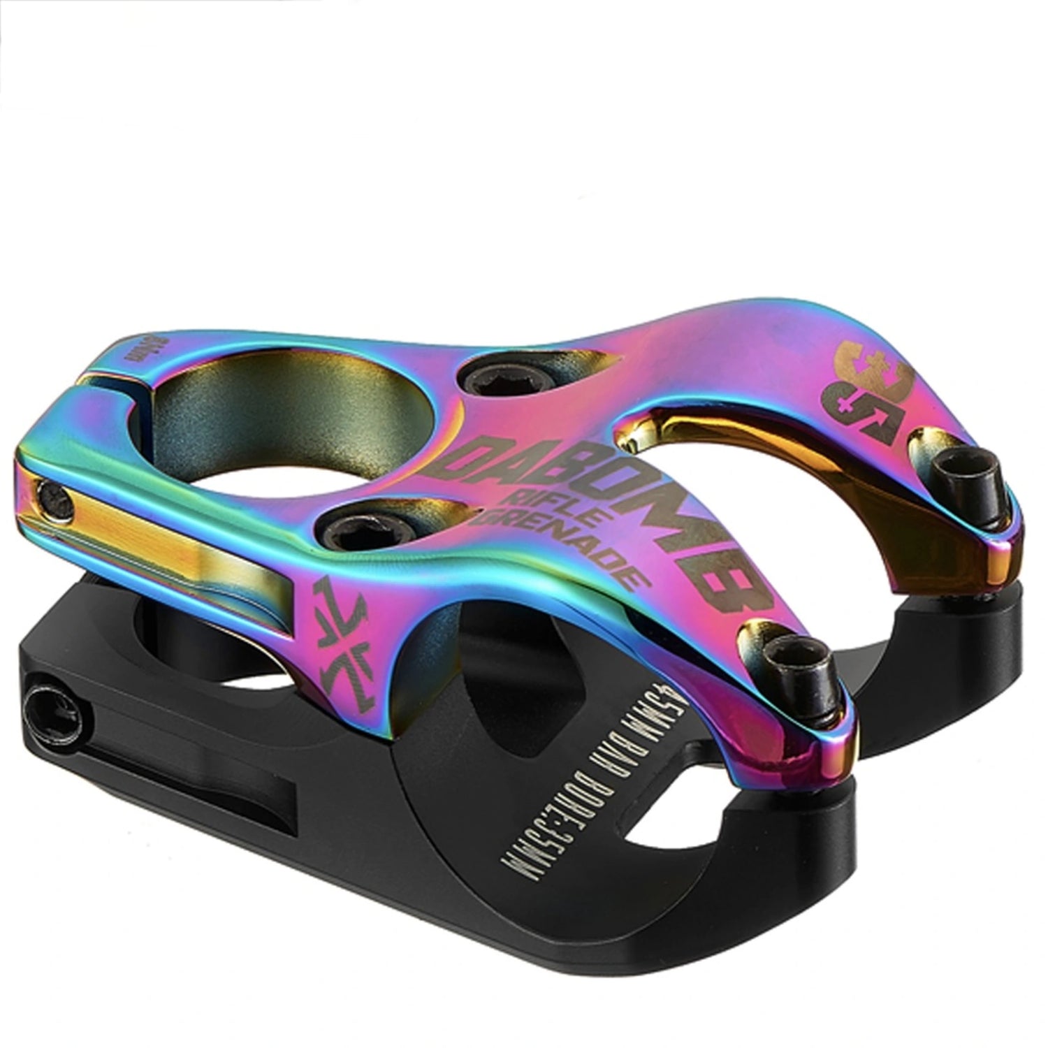 Introducing the Rifle Grenade, the ultimate lightweight aluminum stem for Downhill and Enduro riders who demand top-notch performance and durability! Crafted from high-quality aluminum using CNC machining, this unique stem features cutouts that minimize weight while maximizing strength. The matte black bottom enhances the vibrant anodized color options, especially the striking Jet Fuel finish!