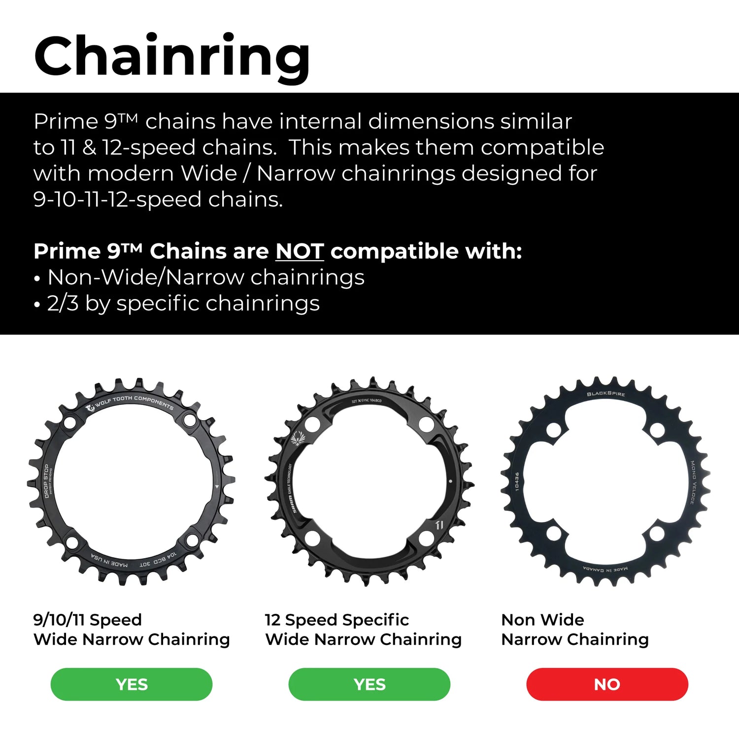 R : Pour une performance optimale, nous recommandons d'utiliser des manivelles 1x spécifiques conçues pour le système de transmission Prime 9.