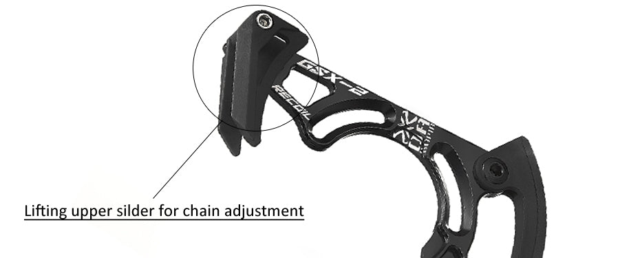 Le guide-chaîne supérieur réduit la chute de la chaîne et stabilise les travaux, il soulève le coulisseau supérieur pour le réglage de la chaîne.