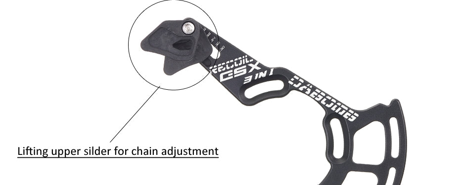 Le guide-chaîne supérieur réduit la chute de la chaîne et stabilise les travaux, il soulève le coulisseau supérieur pour le réglage de la chaîne.