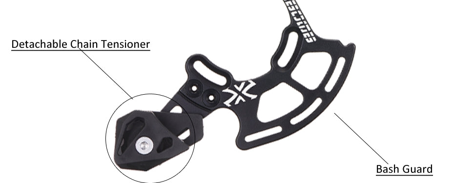 Le pare-chocs robuste est capable de résister aux chocs. Le rouleau inférieur amovible sert de tendeur de chaîne.